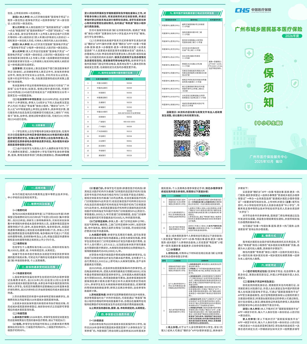广州市城乡居民基本医疗保险(中小学生)参保须知